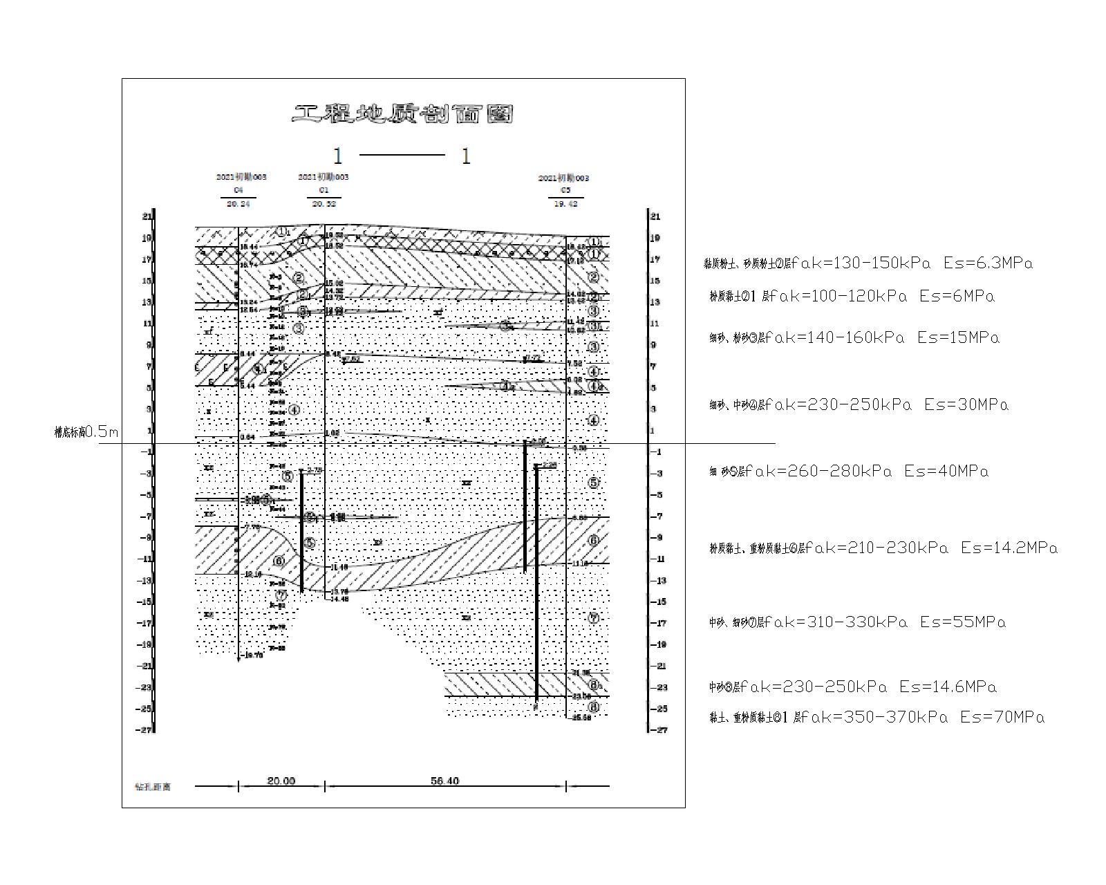 | 工程說明 | 建筑高度為45m,主體結(jié)構(gòu)地上10層,主樓基礎(chǔ)埋深約20.5m,±0.000=22.000m,槽底標(biāo)高0.5m | ||