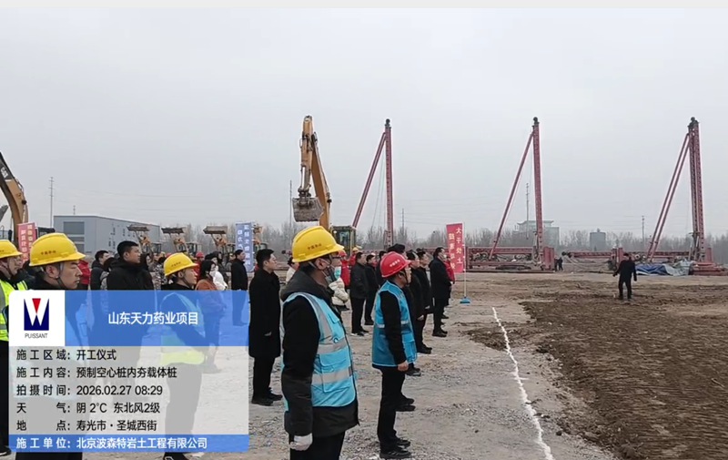 春潮涌動實干忙,匠心筑基啟新章。2月27日,山東天力藥業(yè)有限公司高端生物制藥一體化項目開工儀式隆重舉行,標志著這一入選山東省新舊動能轉(zhuǎn)換重大產(chǎn)業(yè)攻關(guān)的重點項目正式進入建設(shè)階段。北京波森特巖土工程有限公司憑借專利核心技術(shù) — 預(yù)制內(nèi)夯載體樁方案,在多方案投標報價的激烈競爭中脫穎而出,成功成為該項目樁基解決方案提供商,以創(chuàng)新巖土技術(shù)為高端生物制藥產(chǎn)業(yè)高質(zhì)量發(fā)展筑牢根基。