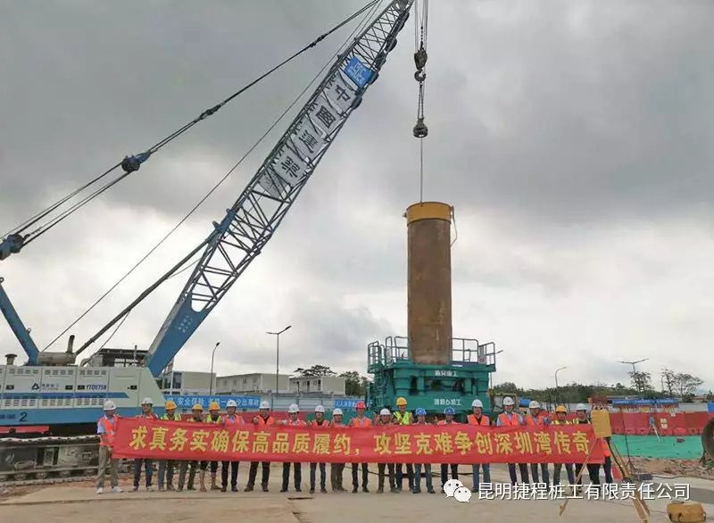 2019年4月25日,在中國建筑第五工程局有限公司相關(guān)領(lǐng)導(dǎo)的現(xiàn)場指導(dǎo)下,經(jīng)捷程樁工工程技術(shù)人員的不懈鉆研和努力,深圳市城市軌道交通13號線工程深圳灣口岸站主體圍護結(jié)構(gòu)咬合樁(φ1800@1450mm)試