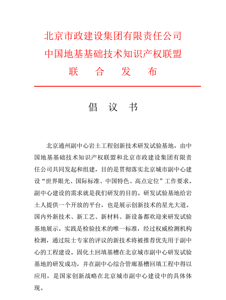 為了貫徹落實“創(chuàng)新驅動發(fā)展”的國家戰(zhàn)略,助力北京城市副中心建設,促進建設領域的節(jié)能減排,推動行業(yè)技術的進步。由北京市政集團和中國地基基礎技術創(chuàng)新知識產權聯(lián)盟組織的“北京城市副中心