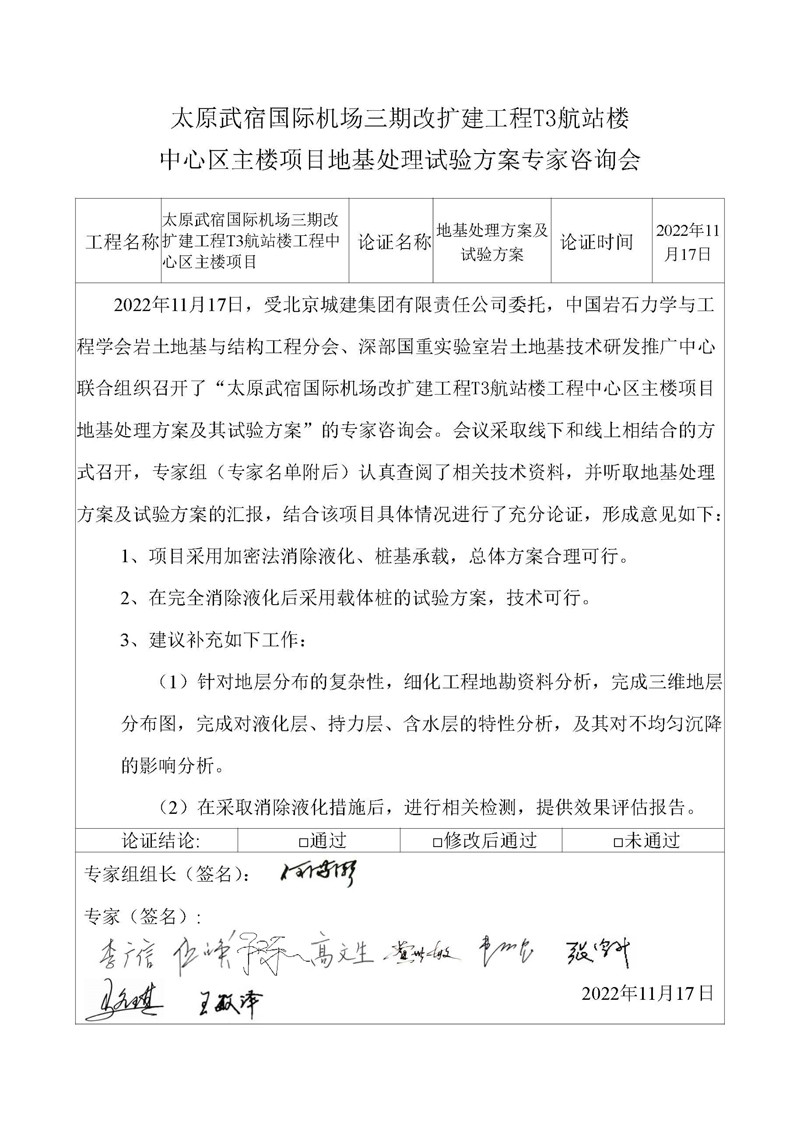 受北京城建集團(tuán)有限責(zé)任公司委托,中國(guó)巖石力學(xué)與工程學(xué)會(huì)巖土地基工程分會(huì)、深部國(guó)重實(shí)驗(yàn)室?guī)r土地基技術(shù)研發(fā)推廣中心于2022年11月17日聯(lián)合組織召開“太原武宿國(guó)際機(jī)場(chǎng)改擴(kuò)建項(xiàng)目地基基礎(chǔ)試驗(yàn)方案專家咨詢會(huì)”。專家組由中國(guó)科學(xué)院何滿潮院士任組長(zhǎng),清華大學(xué)李廣信教授、中國(guó)建筑設(shè)計(jì)研究院有限公司任慶英大師任副組長(zhǎng),專家組成員包括:華東建筑集團(tuán)股份有限公司王衛(wèi)東大師、中國(guó)建筑科學(xué)研究院有限公司高文生所長(zhǎng)、中國(guó)建筑科學(xué)研究院有限公司黃世敏所長(zhǎng)、北京市建筑設(shè)計(jì)研究院有限公司束偉農(nóng)總工程師、山西省建筑設(shè)計(jì)研究院有限公司張宗升總工程師、中航勘察設(shè)計(jì)研究院有限公司馬永琪總工程師、山西省建筑科學(xué)研究院王敏澤副院長(zhǎng)等專家。委托單位北京城建集團(tuán)有限責(zé)任公司張晉勛副總經(jīng)理到會(huì)并發(fā)表了講話。受托單位中國(guó)巖石力學(xué)與工程學(xué)會(huì)巖土地基工程分會(huì)朱春明理事長(zhǎng)、深部國(guó)重實(shí)驗(yàn)室?guī)r土地基技術(shù)研發(fā)推廣中心馬榮全主任參加了會(huì)議。會(huì)議由中國(guó)巖石力學(xué)與工程學(xué)會(huì)黨委副書記、秘書長(zhǎng)楊曉杰教授主持。