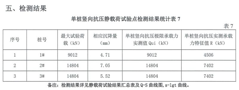 結(jié)合地質(zhì)條件和上部荷載要求,該項(xiàng)目樁基方案采用了預(yù)制空心樁內(nèi)夯載體樁,樁徑600mm和800mm,樁長40~70m,單樁承載力特征值為7400KN。項(xiàng)目試樁結(jié)果滿足設(shè)計(jì)要求。