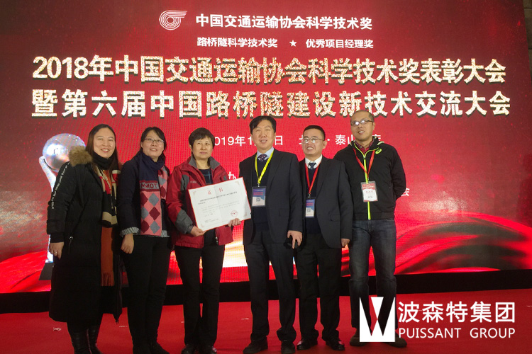 “創(chuàng)新驅(qū)動(dòng)路橋隧共筑交通強(qiáng)國(guó)夢(mèng)”,中國(guó)交通運(yùn)輸協(xié)會(huì)科學(xué)技術(shù)獎(jiǎng)評(píng)選表彰大會(huì)暨第六屆中國(guó)路橋隧建設(shè)新技術(shù)交流大會(huì),于2019年1月5日在北京泰山飯店隆重舉行。北京波森特巖土工程有限公司的